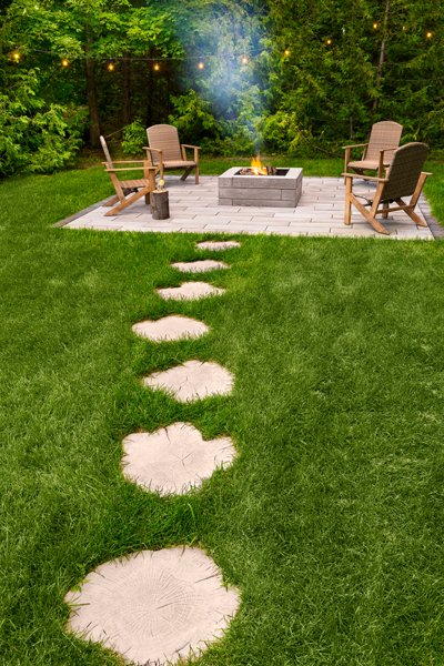 Playing on the popularity of the Borealis collection of slabs and walls, the new Borealis stepping stone offers a versatile slab to create walkways in unpaved areas. This 60mm slab is easy and efficient to install. And because it is made from concrete, it won’t warp the way natural wood will. It is available in the most popular color of the Borealis collection, Hazelnut Brandy. Borealis is part of the wet cast collection.