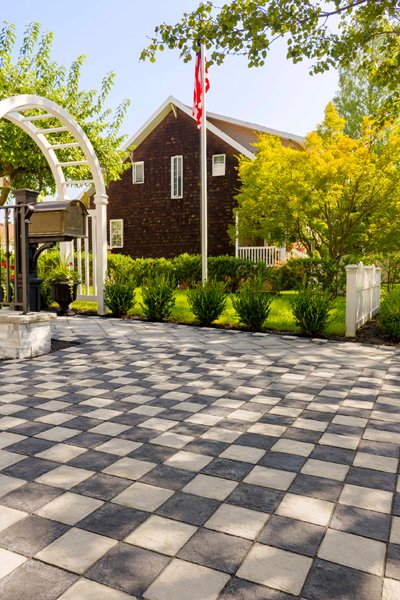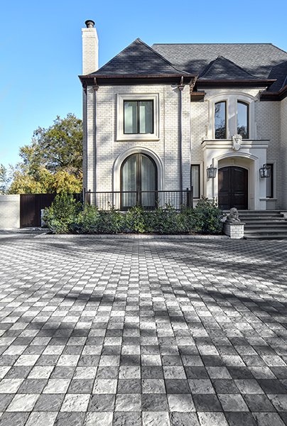 The new Valet pavers are a great way to add character and a touch of luxury to a driveway. These 6 ½ by 6 ½ inch Square units come in 6 colors for the ultimate in mix and match versatility and pattern creation. Inspired by lava rock/basalt stone, the highly textured surface of the Valet brings added visual interest to bandings, mosaics and complete pavements with the same salt-resistant qualities you expect of Techo-Bloc’s dry cast line.