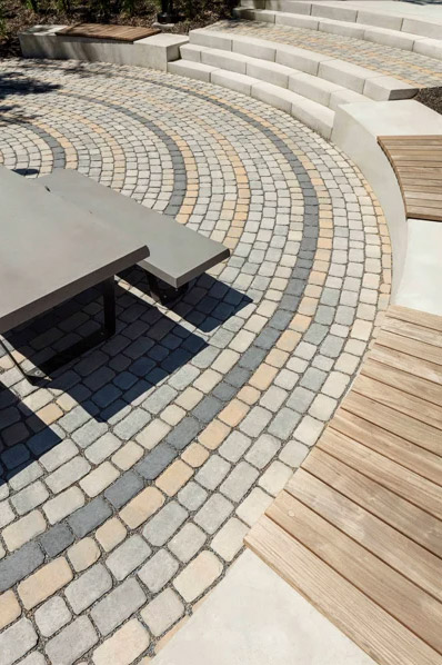 Inspired by Montreal’s beautiful century-old streets, refine your backyard with the Villagio paver. Offering versatile backyard designs, Villagio can easily be the main-field of focus in your beautiful outdoor living space. Moreover, the paver’s beveled texture and multiple dimensions allows you to easily install curved, decorative bandings in your backyard with all 57 mm & 60 mm of Stonedge and Techo-Bloc slab collections. Enjoy your landscape while admiring the beautiful Villagio paver. Great for patios, walkways, driveways and decorative bandings. Vehicular & pedestrian friendly. This pavement is also de-icing salt resistant, withstands harsh climates and comes with a transferable lifetime warranty. Villagio is part of the dry cast collection.